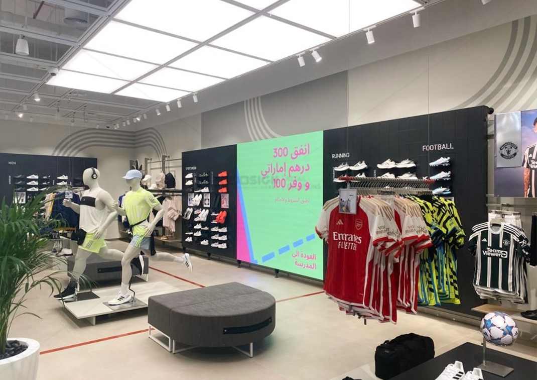 Adidas at Al Wahda Mall allowed us to contribute to the first Home of Sports store in the region. The dynamic LED displays were integrated throughout, enhancing the store with a pixel pitch of P2.5 GOB flexible and P1.8 GOB at a refresh rate of 3840 Hz and 1920 Hz.